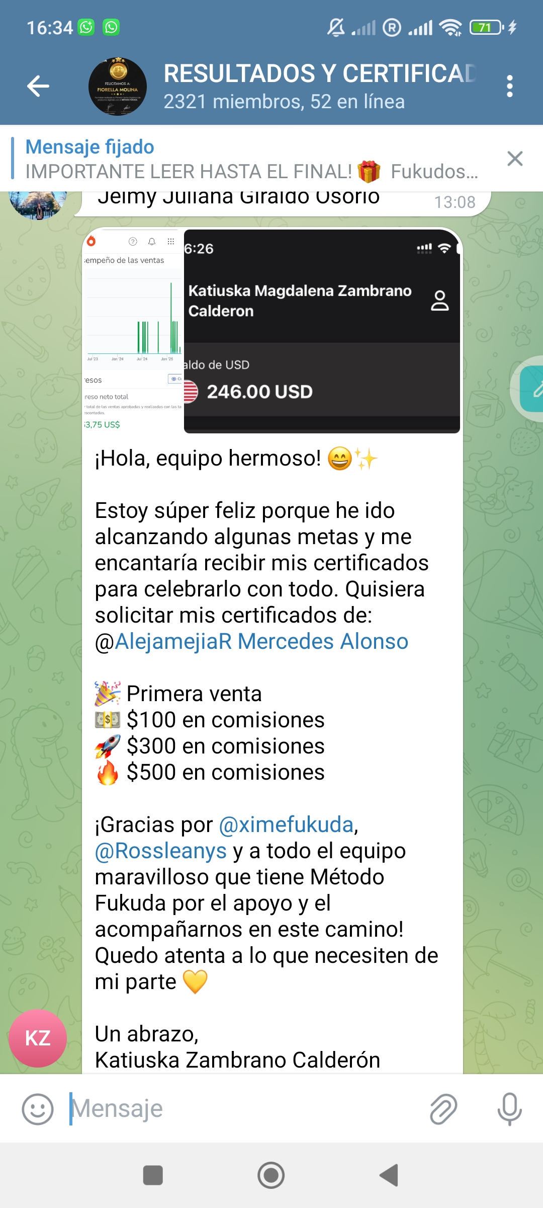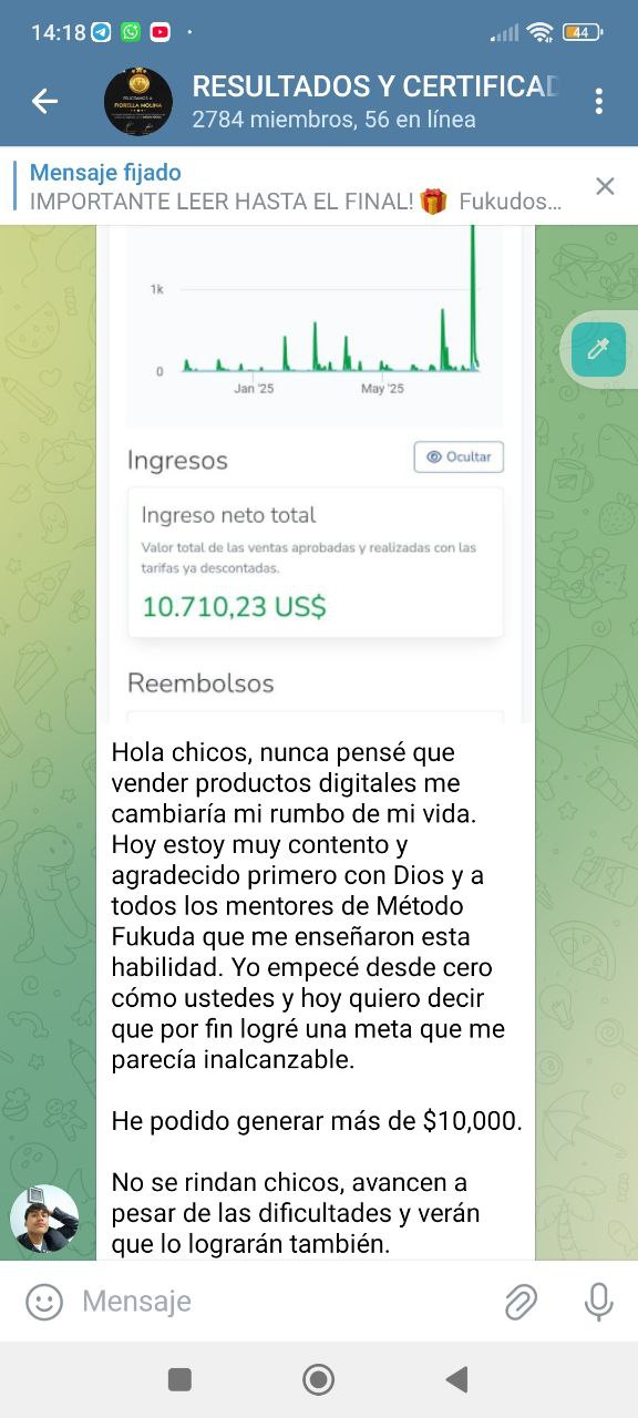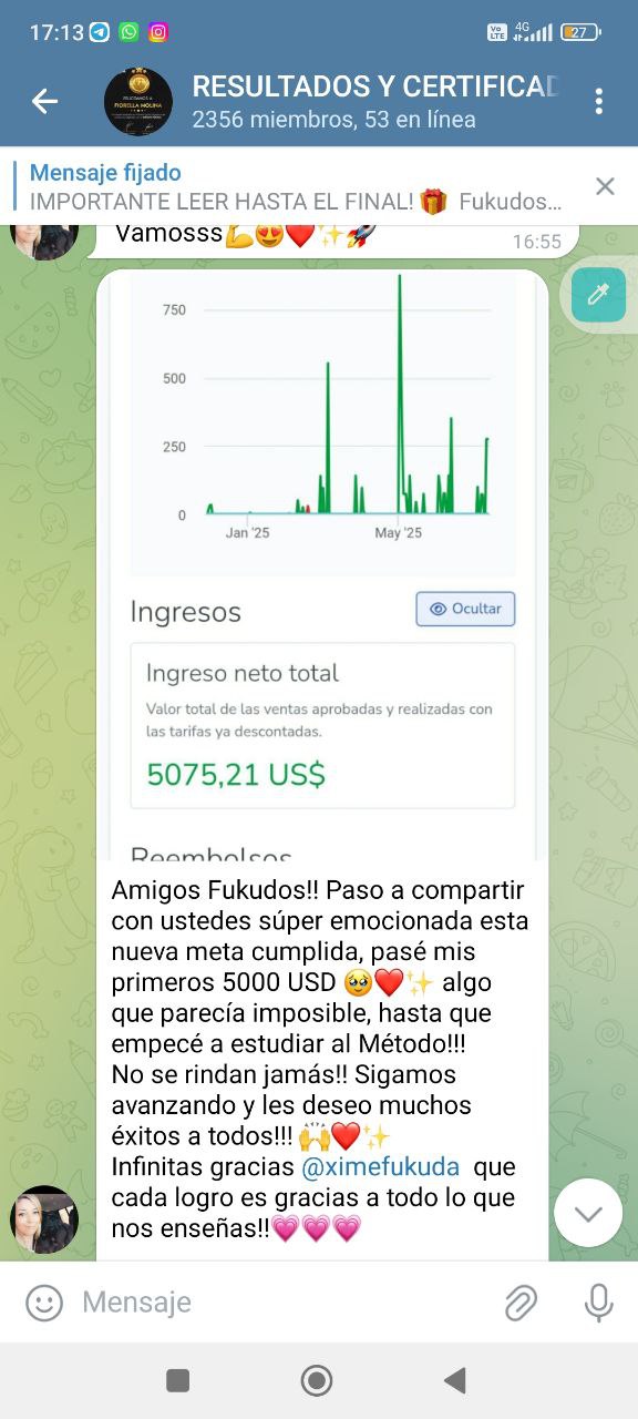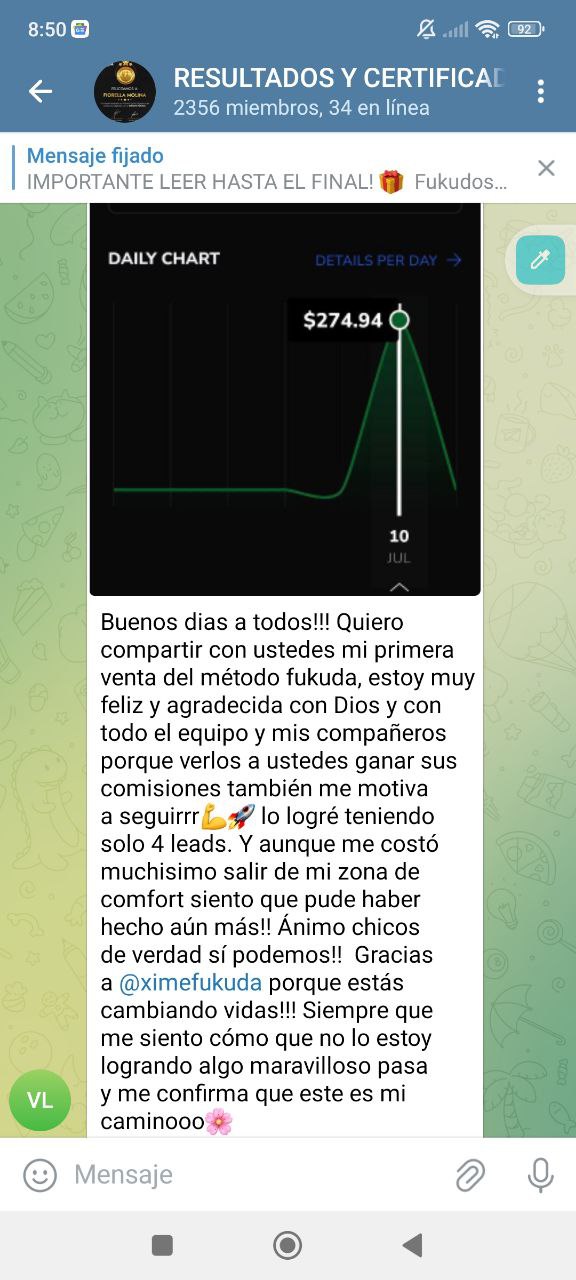 Más del 98% de nuestros estudiantes que implementaron cada una de las estrategias mostradas en método fukuda mentoring reciben notificaciones como esta todos las semanas en su celular.