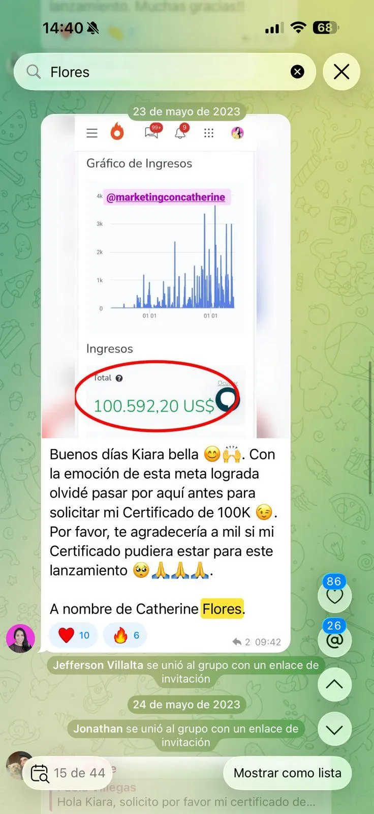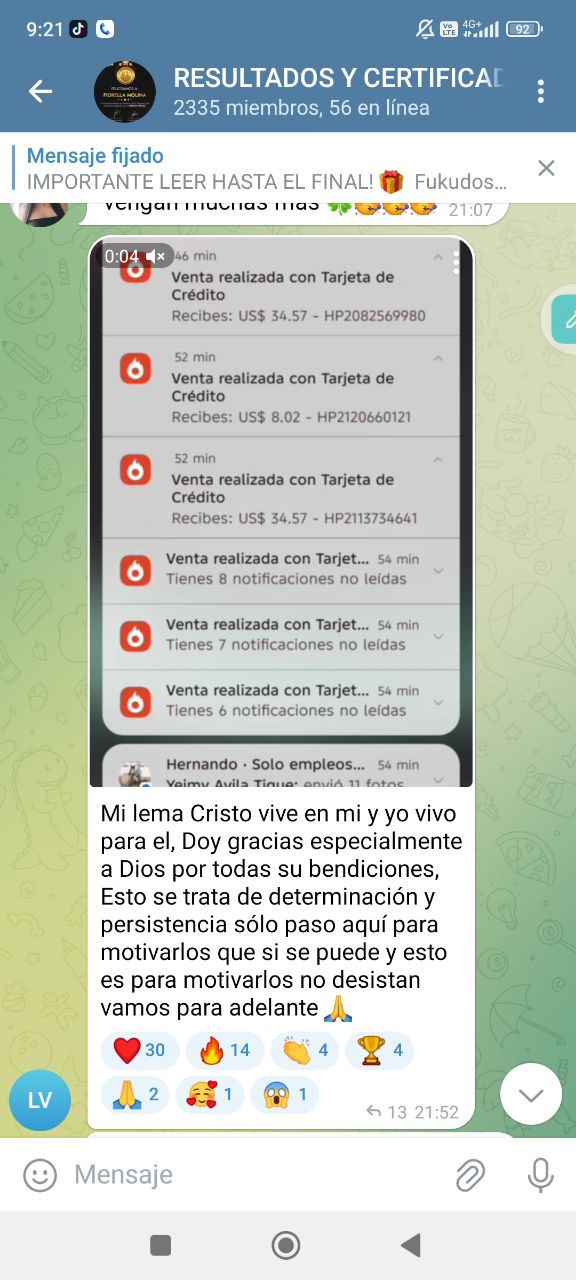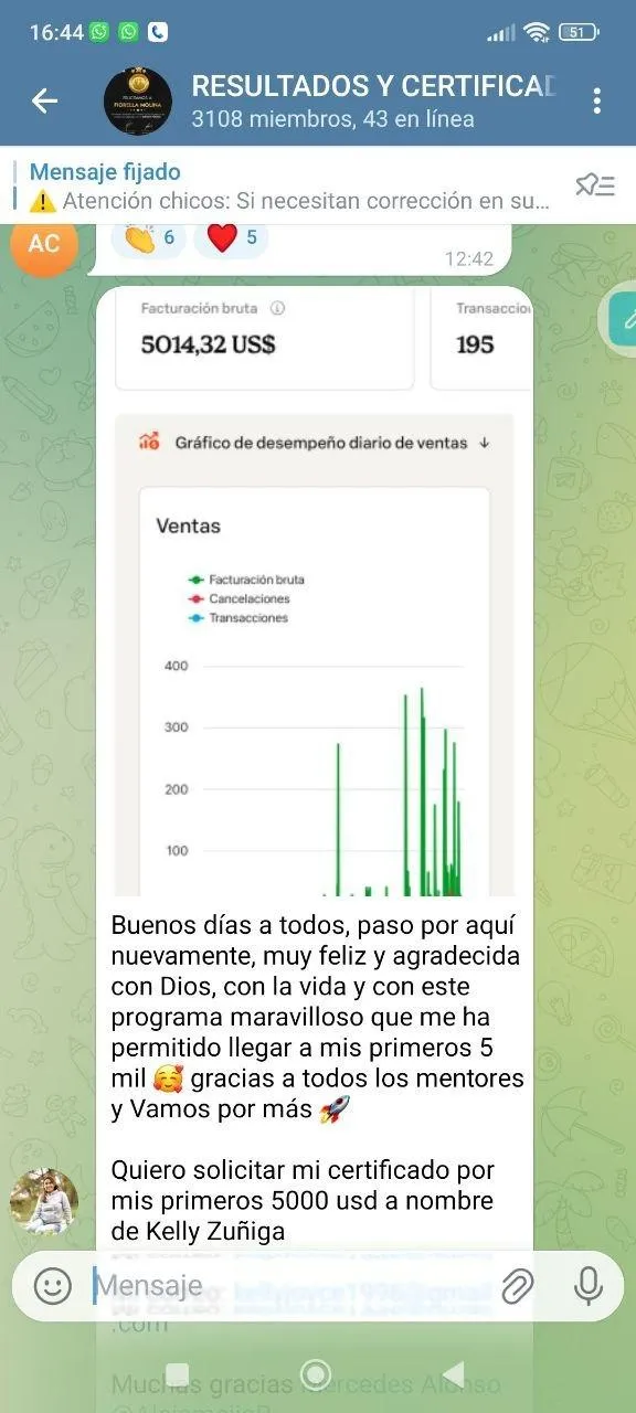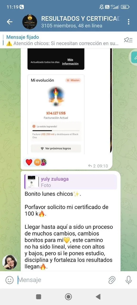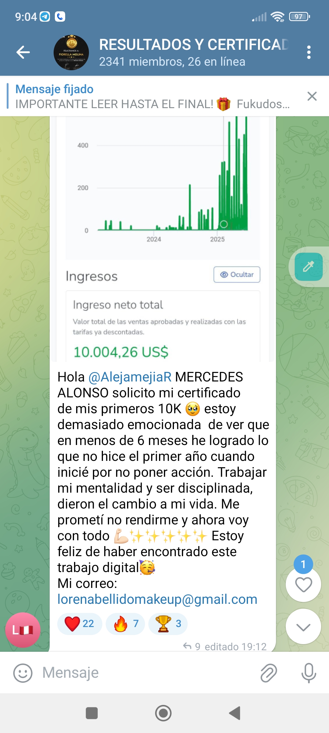 Más del 98% de nuestros estudiantes que implementaron cada una de las estrategias mostradas en método fukuda mentoring reciben notificaciones como esta todos las semanas en su celular.